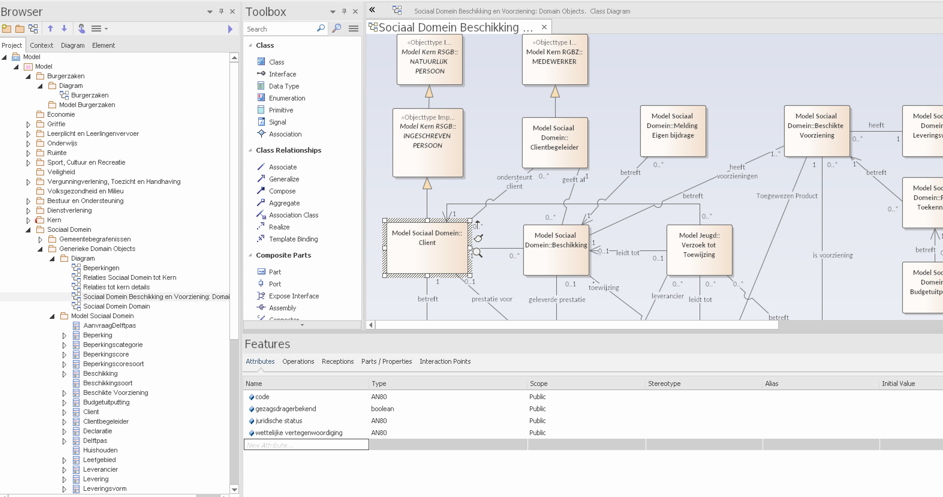 - Open 'Gemeentelijk_Gegevensmodel.qua' met de Enterprise Architect.