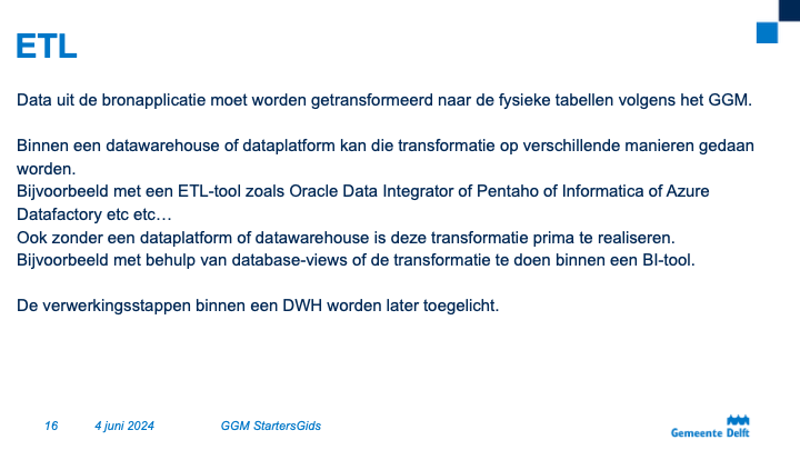 In realiteit kom je hier ook in aanraking met de ETL en architectuur van het Datawarehouse of dataplatform.