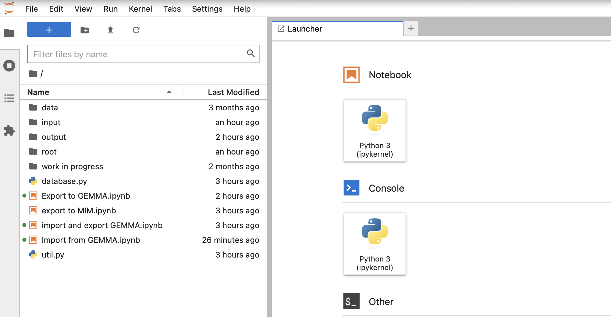 Je kunt nu bij de jupyter notebooks via http://localhost:8888/. De directories "input" en "output" uit de tools-directory zijn nu ook binnen de container gekloppeld en zichtbaar bij de notebooks.